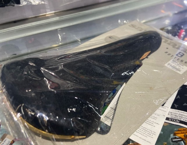 The Selle San Marco Rolls is a much loved saddle used by sporting cyclists for many years. This proven design is as popular today as it always has been, because the shape suits so many people. Classic design with a cover made of leather, gold colored rails and appropriate San Marco logos.