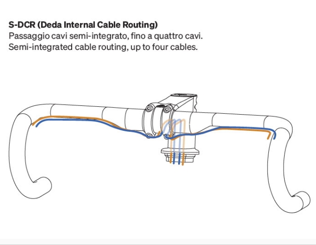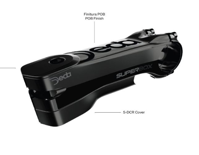 The evolution of famous Superzero stem designed to allow a fully integrated cable routing when assembled with Deda handlebars featuring the DCR system (Deda internal cable routing). The Superbox® stem features a proprietary system that provides two possible mounting solutions for the internal cable routing. The complete internal cable routing (DCR)* or the semi-internal cable routing (S-DCR) through a cover that allows the installation, adjustment or service without unnecessary complications for electronic cables and hydraulic housing disconnection. Superbox® works with 1-1/8” standard fork steerer, the stem is compatible with a 46 mm (for 1-1/8” bearing) or 56 mm (for 1.5”bearing) upper headtube. The stem package includes special spacers that provide the channels for the housing cables. Spacers and the nylon cover are designed with slits that let them pull open, they can be added or removed to get the fit right without having to remove all cables. The innovative 3D forging technology and the flat design result in a better aero performance.The Superbox stem is offered in different lengths from 90 to 140 mm to enable riders to find their ideal riding position. The nylon cover, the integrated topcap and headset spacers, the 46 & 56 mm topcover complete the line of accessories included.