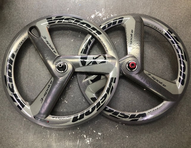 Vision’s first Metron 3-spoke carbon wheel for world-class road and track applications.